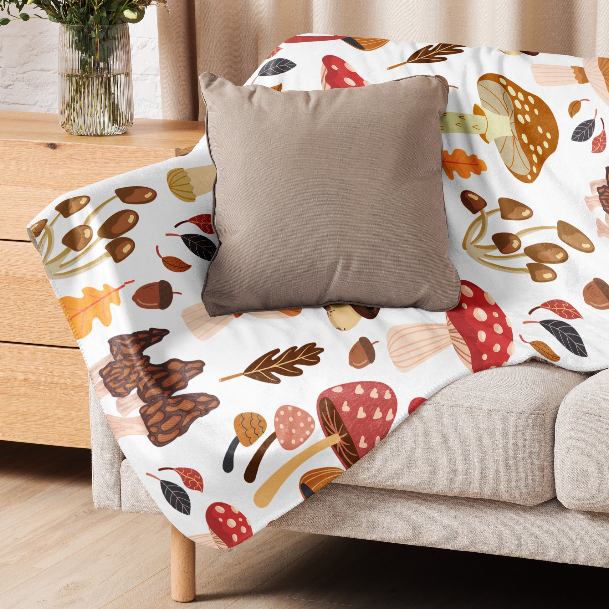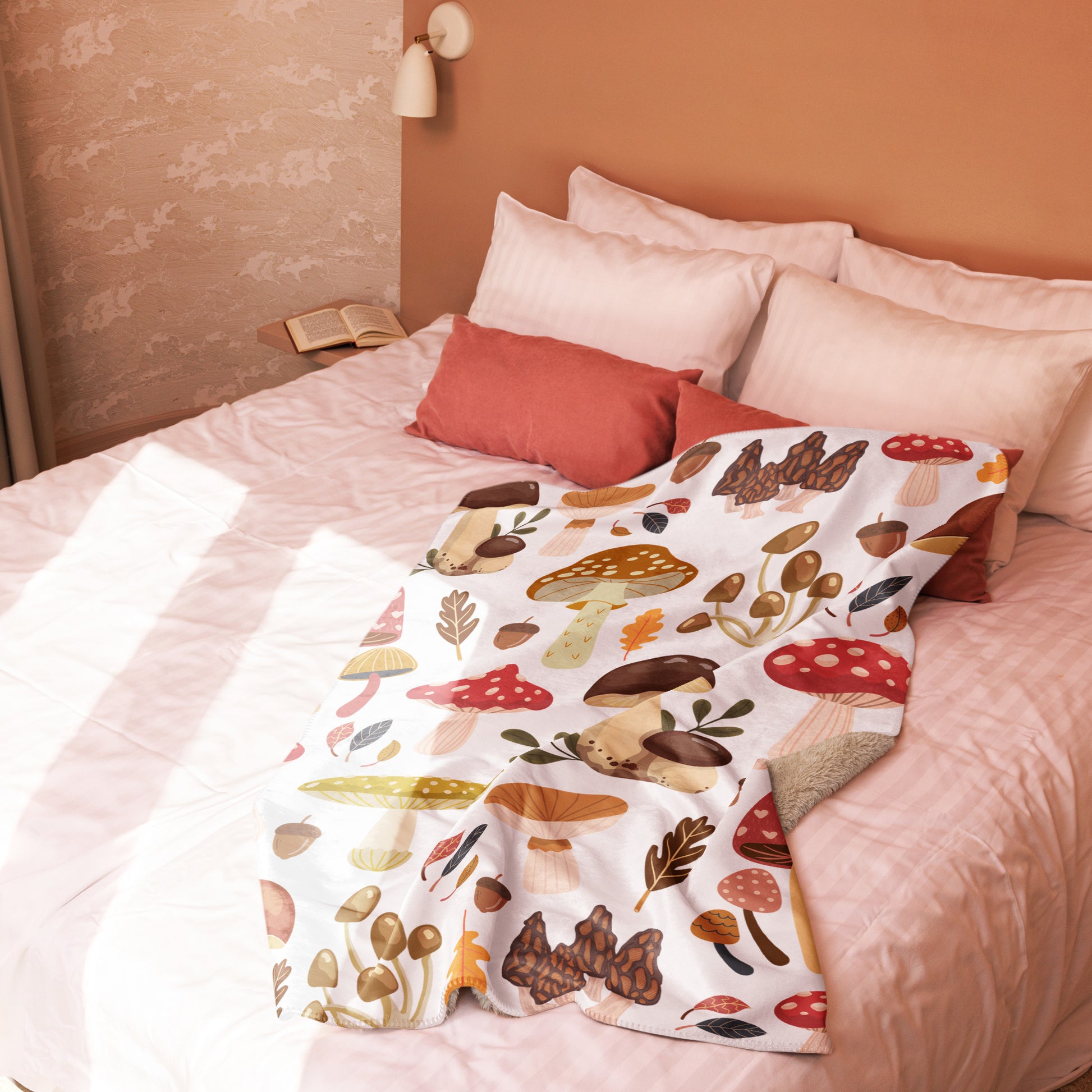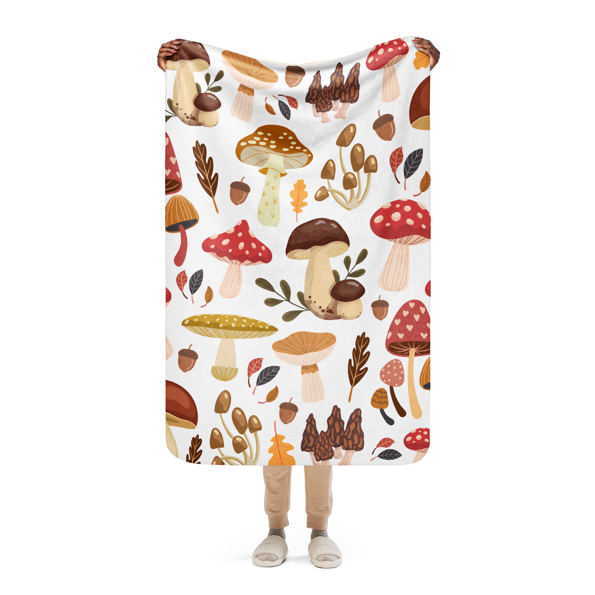 Cozy up in nostalgic charm with our Retro Mushroom Sherpa Blanket, an essential addition to your cottagecore haven. Crafted to envelop you in warmth and whimsy, this blanket effortlessly merges vintage aesthetics with modern comfort.